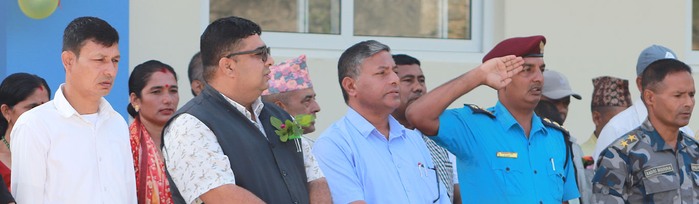 गोलन्जोर आधारभूत अस्पताल सेवा शुभराम्भ कार्यक्रममा राष्ट्रिय गानमा सरिक हुँदै गर्दाको तस्विर