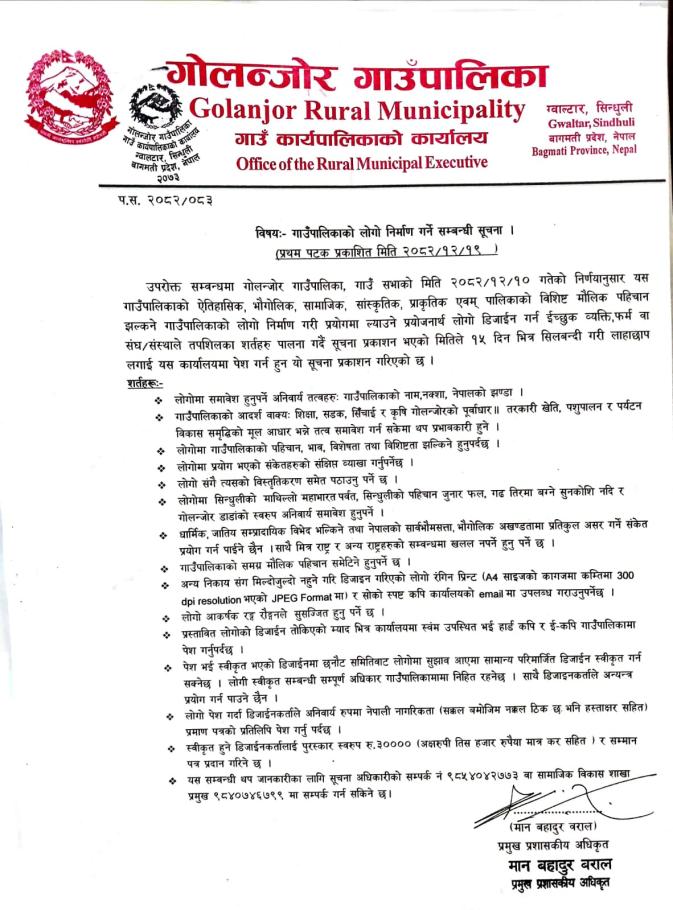 गाउँपालिकाको लोगो निर्माण गर्ने सम्बन्धी सूचना