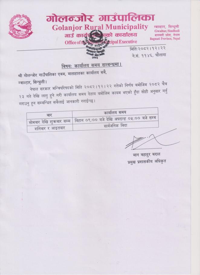कार्यालय समय सम्बन्धमा।