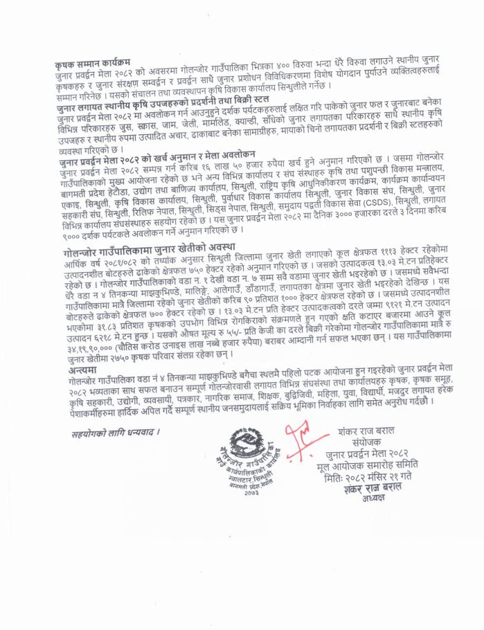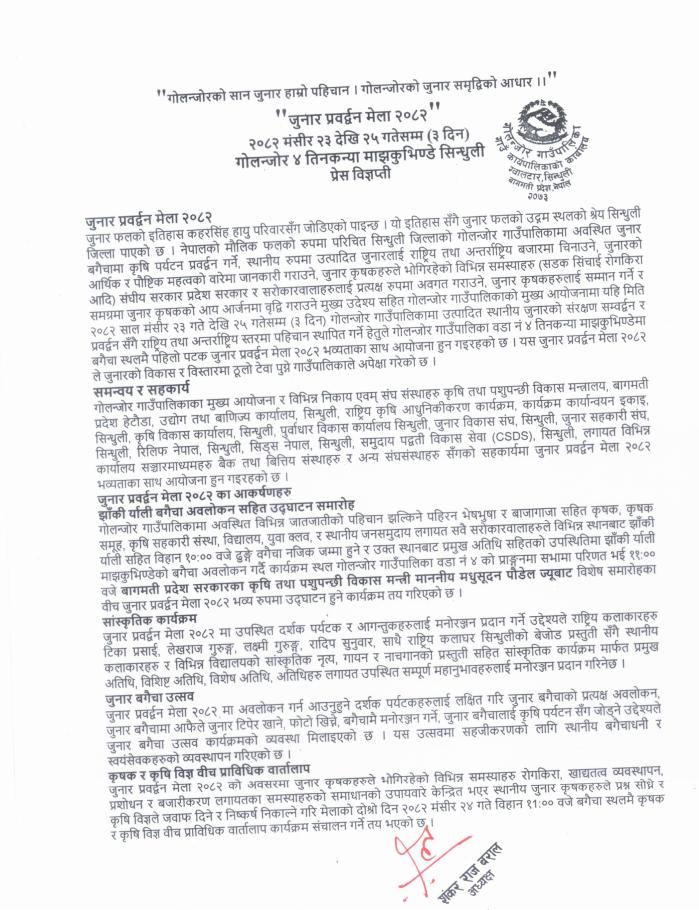 जुनार प्रवर्द्धन मेला २०८२ को प्रेस विज्ञप्ती